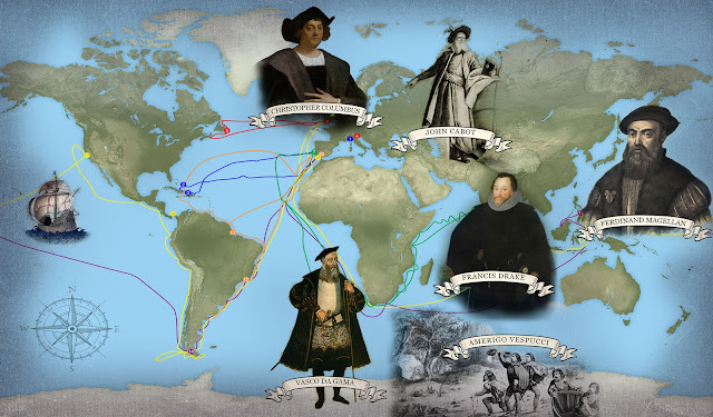 Christopher Columbus (1492) discovered the Americas, leading to the eventual establishment of transatlantic trade routes.